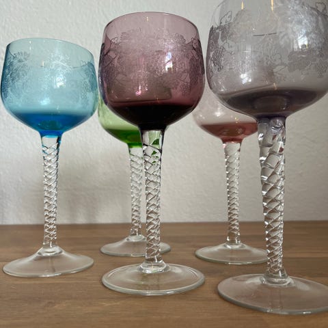 6 stk super smukke Rømerglas i purple. 22 cm høje. Uden skår.