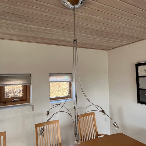 Standerlampen/ gulvlampen er fra kvalitetsmærket THEIS Cassiopeia. Højden er 140 cm, og toppens diameter er 46 cm. Velholdt og uden fejl.