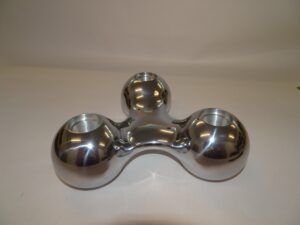 AJ Living lysestange, Georg Jensen - NY!, Ny/ubrugt Arne Jacobsen lysestage (design 1957 til SAS Royal Hotel) i massiv poleret aluminium, h7cm, Ø20cm. I original indpakning og kun udpakket for fotografering så i perfekt stand (ingen fingermærker).