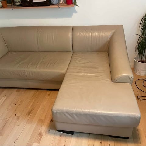 Sort lædersofa med chaiselong til salg