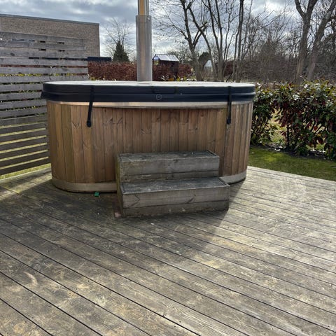 Brændeovn med tilhørende skorsten anvendt på et kirami vildmarksbad. Ovnen er utæt. Jeg har forsøgt at reparere den men uden held. Der er intet galt med skorstenen.