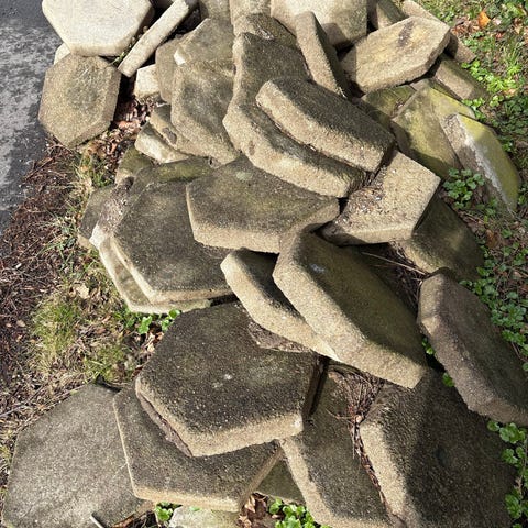 Sekskantede havefliser i grå beton. Fliserne egner sig til belægning af gangstier, terrasser, indkørsler eller andre udendørs arealer. Formen gør det muligt at lægge forskellige mønstre og tilpasse belægningen til mindre arealer og hjørner. Fliserne kan genanvendes ved omlægning af eksisterende belægning eller etablering af nye udendørs arealer.