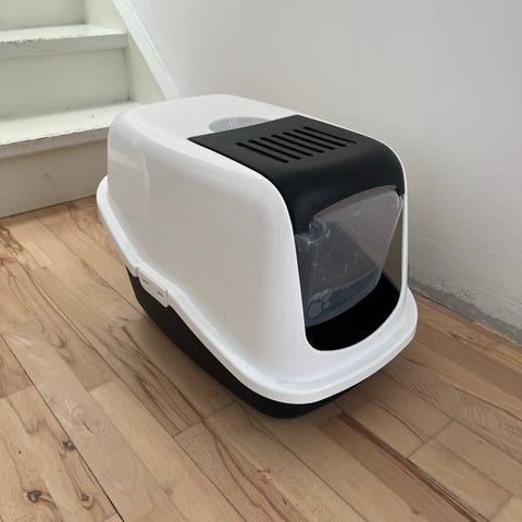 Antracit Curver kattetoilet kun forsøgt brugt en enkelt gang da min kat var for gammel til at acceptere et lukket toilet men foretrak åben bakke . Nypris 360 kr.