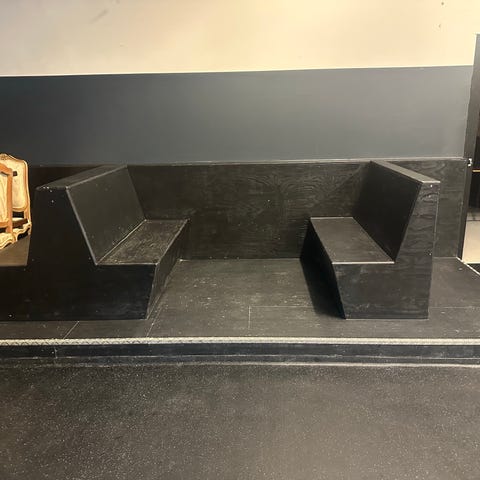 Bar eller receptionsdisk i hvid med blå.