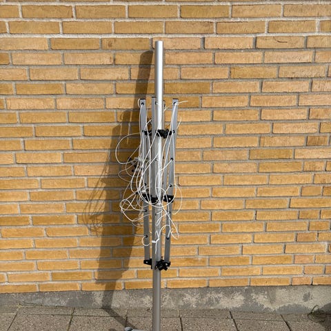 Kan klappes sammen for opbevaring, som vist på billederne. Medfølgende metalbeslag med skrue til fastgørelse på næsehjulets stang.