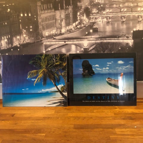 IKEA vægdekoration med motiv af en træbro ud i vandet. Billedet viser en rolig vandoverflade og en bro i forgrunden med bjerge eller land i baggrunden. Egnet som vægpynt i stue, soveværelse og gang