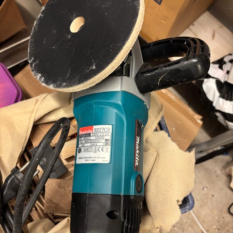 UBRUGT HiKOKI SP 18VA polermaskine med 180 mm (7") skive. El-drevet model med sidehåndtag og ledning til netstrøm. Velegnet til polering og slibning af overflader, f.eks. metal og lak. Leveres i original kasse som vist på billederne, PÅSKETILBUD