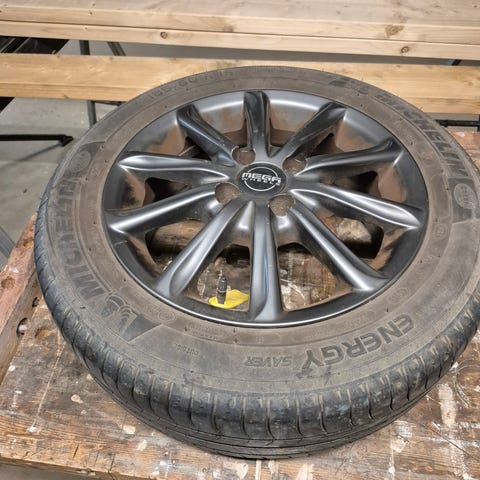 Sommer dæk på stålfælge med tilhørende alufælge