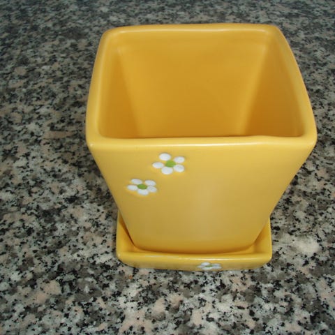 Grøn urtepotte og underskål.