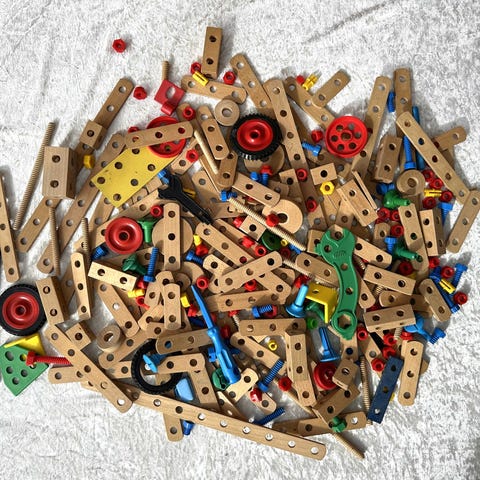Super fedt konstruktionssæt, der giver mulighed for at samle alt muligt, fx kraner, dyr, biler mv. Adskillige dele - kun fantasien sætter grænser. Flere sæt er samlet gennem årene.