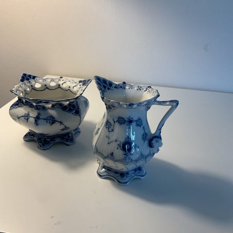 Royal Copenhagen Musselmalet kopper og underkopper i porcelæn i blå/hvid dekoration. Sættet består af 18 underkopper og 16 kaffekopper.