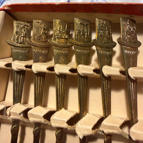 ABSA teskeer med mønstret skaft i sølvfarvet metal. Sættet består af seks skeer med ens diamantmønstret skaft. Skeerne egner sig til brug ved te, kaffe eller dessert og kan indgå som del af et bestik eller som supplement til eksisterende stel. Mærkning ses på bagsiden af skaftet.