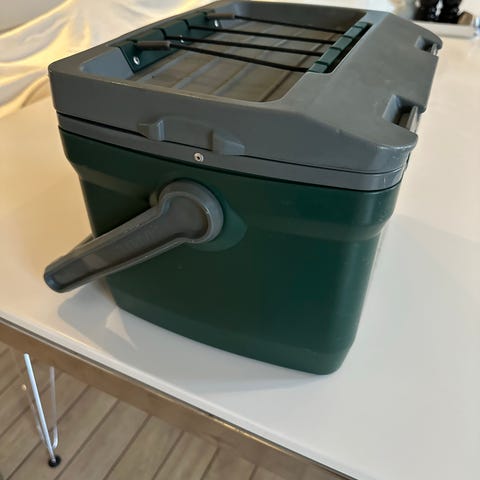 rigtig pæn brun køletaske med 2 bærehåndtag og foret med alu-farvet isolering og der er 2 køleelementer. Str. H: 28 cm B: 33 cm D: 11 cm