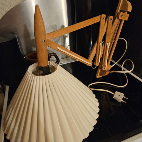 Dansk designet væglampe/læselampe i træ i sakselampe/udtræks-model.