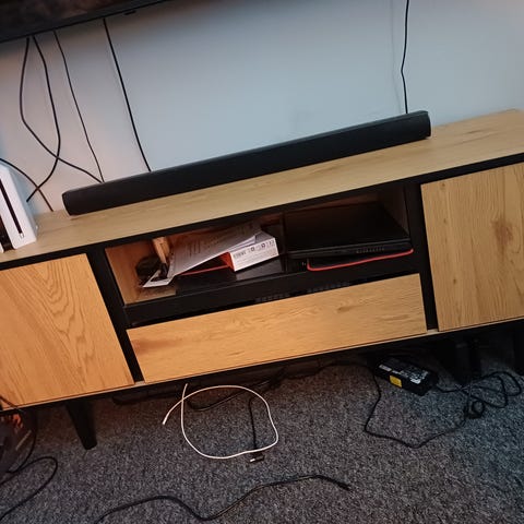 Tv-bordet er som nyt. Mål fremgår ovenover.