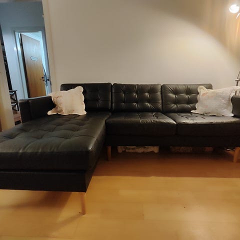 Vildt fed sofa som også kan bruges til at sove på. De øverste lag af sofaen kan foldes ud som en sovesofa. Billederne er fra ikeas hjemmeside. Den er ikke blevet beskadeligt og er stadig i meget god tilstand.