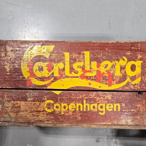 Giv din indretning personlighed med denne originale Carlsberg-ølkasse i den ikoniske mørkerøde farve. Kassen har den helt rette patina og det klassiske gule logo, der emmer af dansk historie.