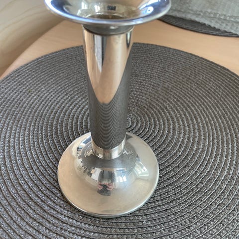 Gammel superfin sølvplet lysestage og tilhørende lys