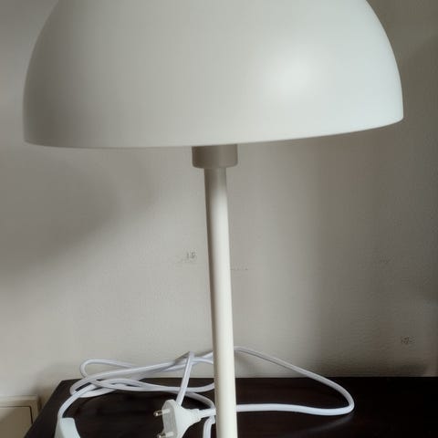 Beige/sand bordlampe. Kun taget ud af emballagen kortvarigt for at tage disse billeder, for at vise den og at den virker. :)