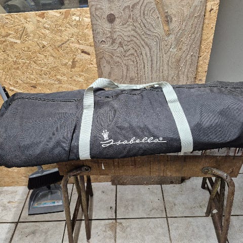 Næsten ubrugt Isabella Sunshine Plus Solsejl med fiberstænger. Brugt få gange, da vi har haft et lufttelt.