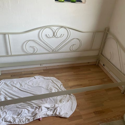 Ilva sengestel i hvidmalet metal med dekorative detaljer. 90 x 205 cm. Passer til boksmadras. Velegnet til brug i pigeværelset eller havestuen. Sengen som stel uden madras.
