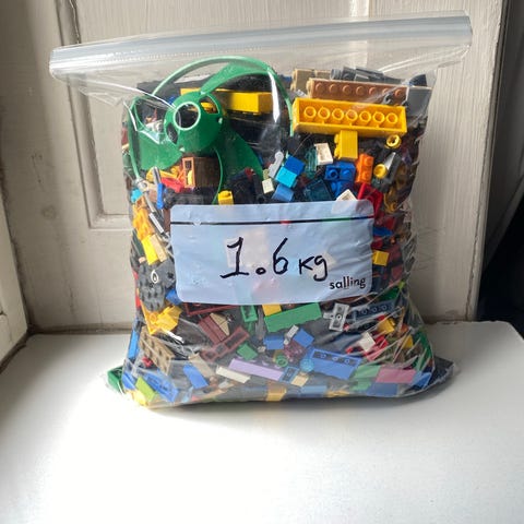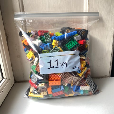 LEGO blandede klodser i forskellige former og farver. Indeholder et mix af standardklodser, specialdele, hjul, plader og mindre elementer. Egnet til fri byggeleg, reservedele eller udvidelse af eksisterende LEGO-samlinger. Præcist antal klodser og oprindelige sæt er ikke specificeret. Der er ca 4 kilo. Der er hvad du ser på alle billeder. Kan sendes for 55kr . Ingen samlehæfter. Kun til fri leg.