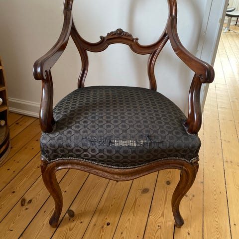Stol med armlæn brun polstret sæde træ