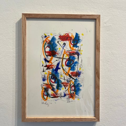 M. Agerskov kunsttryk med motiv af en kvinde set bagfra foran en farverig graffitivæg. Værket er udført i et collage- og fotopræget udtryk med mange stærke farver og tekstfragmenter i baggrunden. Trykket er signeret i nederste hjørne og indrammet i en enkel, hvid ramme, der omkranser det kvadratiske billede. Egnet som vægdekoration i stue, gang eller kontor.