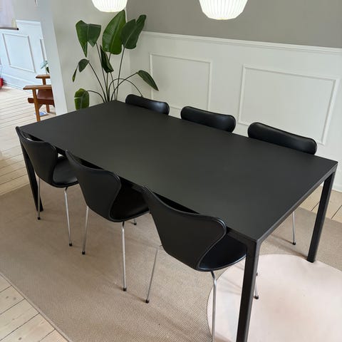 T12 spisebord med hvidt stel i pulverlakeret stål og bordplade i hvidt laminat.