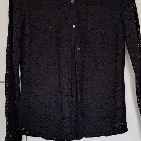 Skjortebluse/tunika med fint mønster og knaplukning foran.