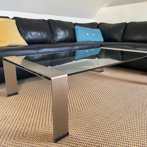 Udført i aluminium med glasplade. Enkelte brugsspor på glaspladen. Nypris 9500 kr.