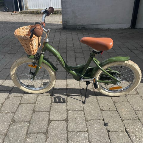 Super flot Stoy børnecykel med 16" hjul i rød-orange farve. Aldrig brugt. Til børn på 5-6 år.