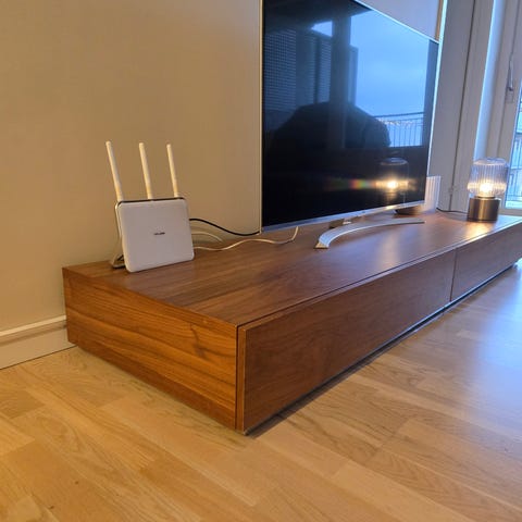 Flotte tv modul fra BoConcept. Den har to skuffer. Begge trækkes ud.