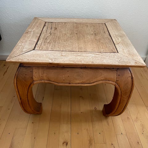 Godt som sidebord eller lille sofabord. Lidt mærker på plade, men kan nok klares med noget olie