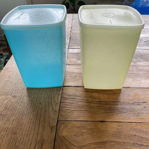 Tupperware madopbevaringsbokse i plast. Sæt med flere runde beholdere i forskellige størrelser og farver, velegnet til opbevaring af mad i køleskab eller fryser. Låg med tætsluttende lukning, som hjælper med at holde indholdet frisk. Kan bruges til rester, madpakker eller sortering af tørvarer i køkkenet.