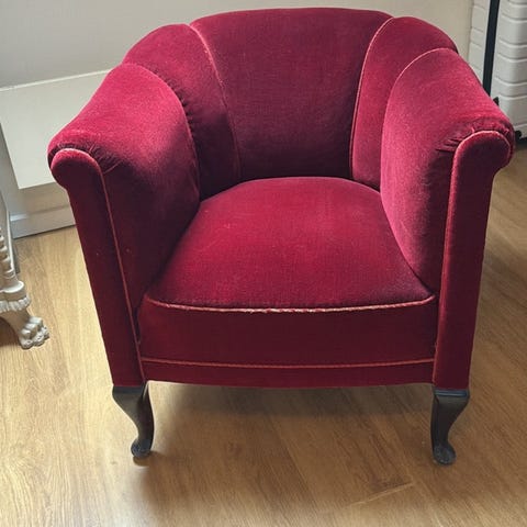 Ukendt mærke klassisk lænestol rød velour træstel