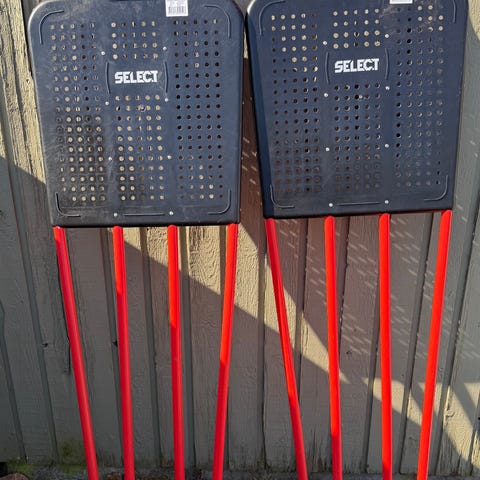 Select træningssæt med hække, ringe og koordinationsstige. Sættet indeholder flere gule træningshække, gule træningsringe, en koordinationsstige og et par flade markeringstoppe. Udstyret leveres i en sort Select taske til opbevaring og transport. Velegnet til koordinationstræning, hurtighedsøvelser og bevægelsestræning på græs eller andre udendørs underlag.