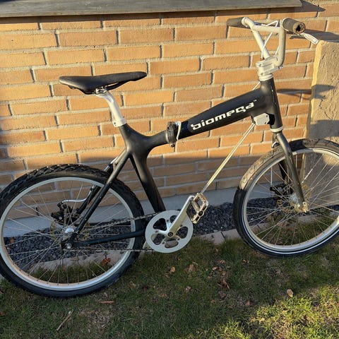 Dansk design cykel fra Biomega. En del nye dele, men lejerne i dagerste nav skal nok påregnes skiftet.