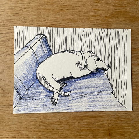 Tegning af hund på sofa