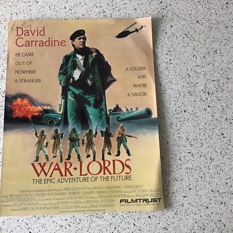 Warbringer plakat med bandfoto og autografer