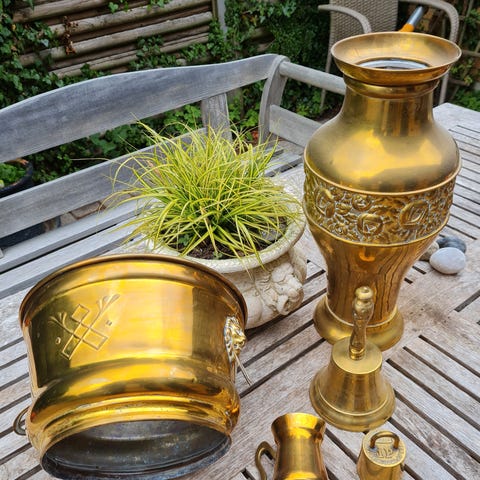 3 forskellige størrelser urtepotter, 9 stk ialt, 2 lysestage, 4 fyrfadsstager