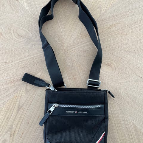 Tommy Hilfiger skuldertaske til unisex i sort plastmateriale. Tasken har justerbar skulderrem og lynlåslukning øverst. På fronten sidder et Tommy Hilfiger-logo. Indvendigt er der et hovedrum med plads til mindre hverdagsting som telefon, nøgler og pung. Tasken er egnet til daglig brug som kompakt crossbody- eller skuldertaske.