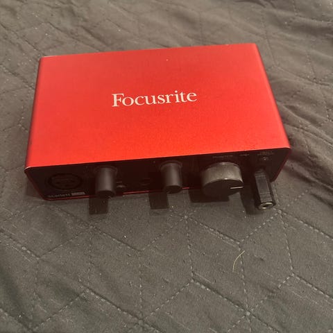 Audient iD14 lydkort USB audio interface. Kompakt desktop-interface med to kombinerede mikrofon-/instrumentindgange på XLR/jack, linjeudgange samt hovedtelefonudgang på fronten. Enheden tilsluttes computer via USB. På billederne ses medfølgende kabler og original emballage.