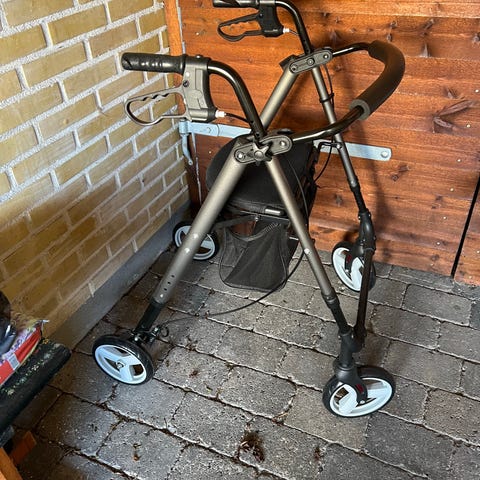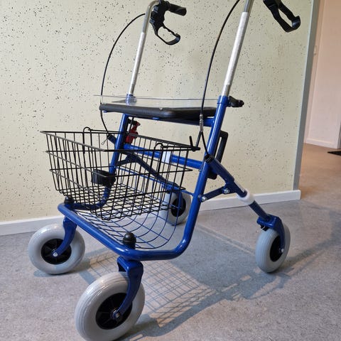 Sælger denne rollator der er kun er brugt et par gange. Der er rygstøtte og et lille net til montering foran på rollator.