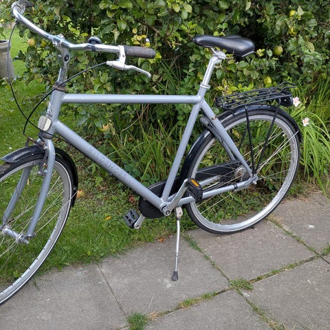 Vores datter har haft denne cykel i mange år uden stort set at få den brugt. Den er dermed på ingen måde slidt, så tandhjul, kæde mv er i god stand. Men den er rustet og skal have nye dæk og slanger. Lås følger med og fremstår 100% lovlig og klar til brug, når den får nye dæk og slanger :)