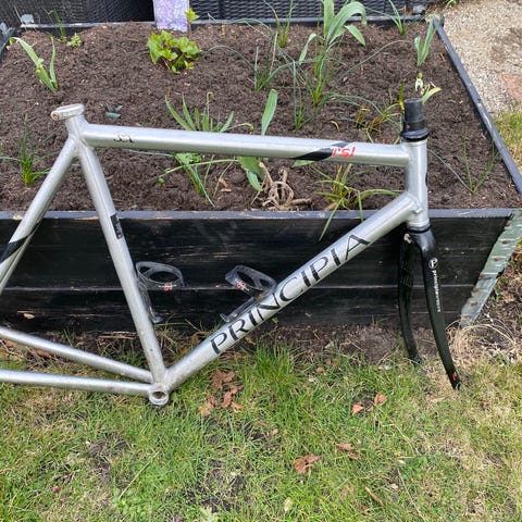 Jensen K12 racercykelstel i carbon. Flot stand og vægt kun 1785 gram med Carbon forgaffel og integrerede styrfittings fra BBB. Kronrør 16 cm, overrør 54 cm og sadelrør 50 cm, alle målt c-c. Ø27,2 og BSA gevind i krankboksen. Kan sendes for + 100 kr. ved forudbetaling