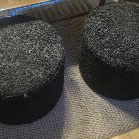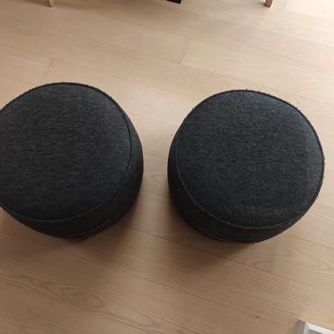 Materiale fremstår som blødt og polstret tekstil eller kunstlæder. Der kan forekomme mindre brugsspor som vist på billederne. Kasserne måler ca 40 x 40 cm