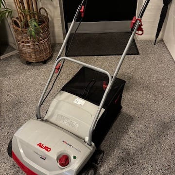 AL-KO vertikalskærer til plænepleje. Elektrisk model i grå og rød med håndskub og højdejusterbart styr. Med udskiftelige aksler/valser som vist på billederne, egnet til at fjerne mos og filtlag i græsplænen. Velegnet til almindelige haver med fast underlag til kørsel som fx fliser og græs.