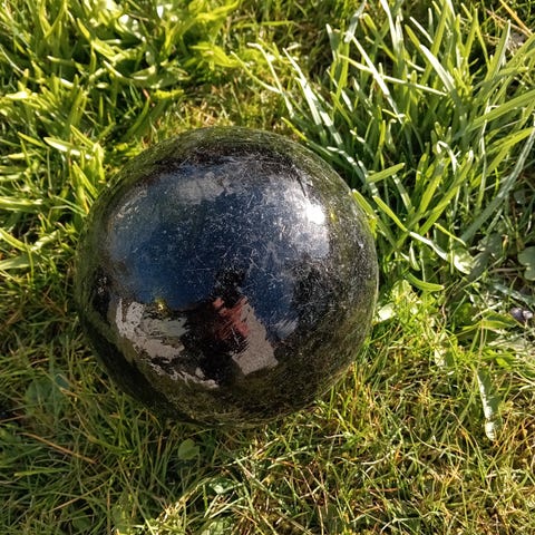 grøn glaskugle med ankermotiv