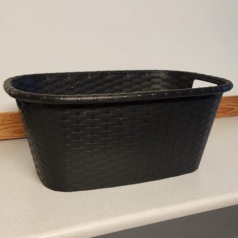 Cylindrisk form kurv i flet. Egnet til opbevaring, f.eks. vasketøj, tæpper eller legetøj.